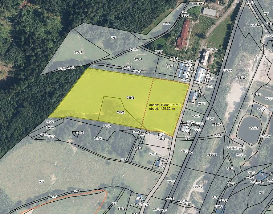 Přístup na pozemky z hl. silnice - pozemek komunikace p.č. 778.