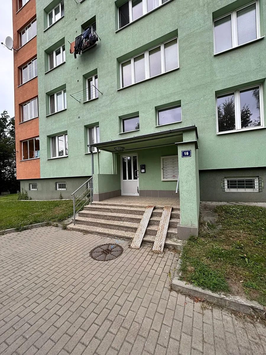 Družstevní byt č.16 má dispozici 2+1 a celkovou podlahovou plochu 44,6 m2. Orientace oken je na jih. Orientační rozměry místností: obývací pokoj o podlahové ploše 16 m2, druhý pokoj - ložnice o podlahové ploše 8 m2 a kuchyň 7 m2, koupelna se sprchovým koutem průchozí na WC 4,6 m2, zádveří 4,5 m2, vstupní chodba 4,5 m2. K bytu náleží sklep, který se nachází v suterénu domu. V bytě se nachází původní vybavení - KL, komora, vest. skříně, v koupelně sprchový kout a umyvadlo.