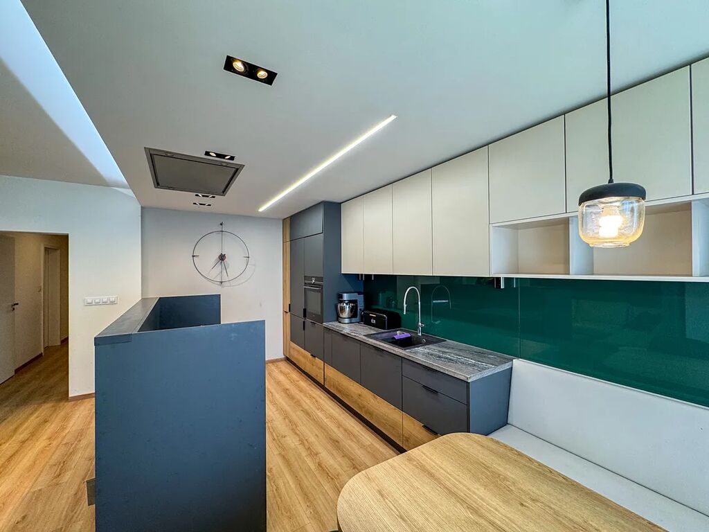 Interiér bytu byl vytvořen ve spolupráci s designovým studiem a byl navržen s maximálním důrazem na kvalitu, funkčnost i estetiku.