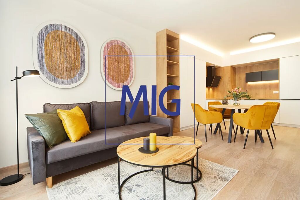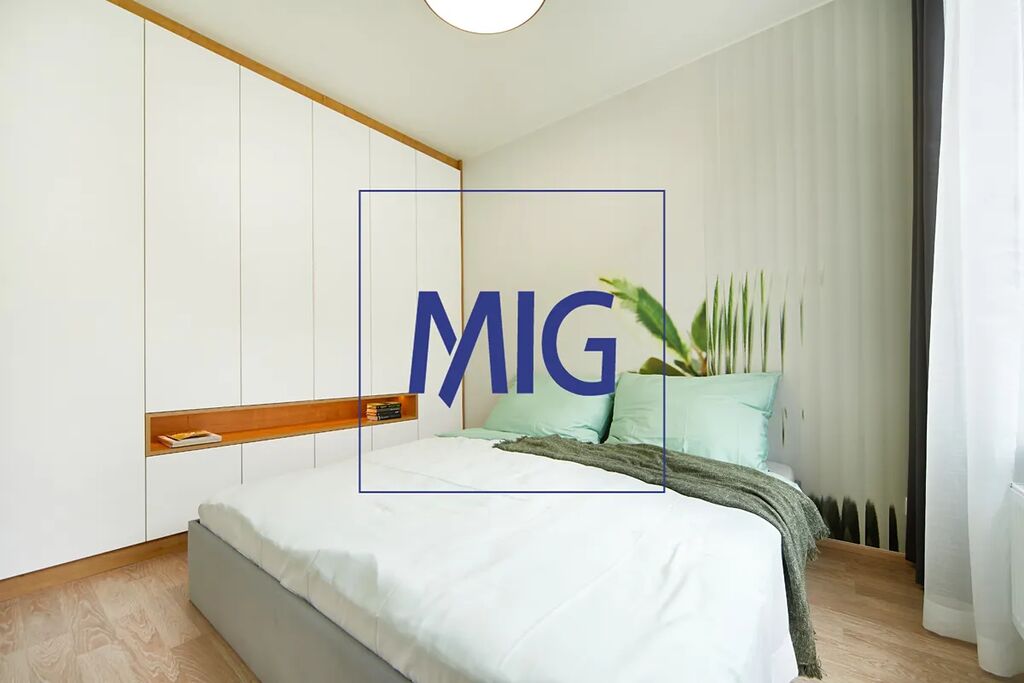 Obývací pokoj o velikosti 25,4 m2, s vybaveným kuchyňským koutem, je příjemně prosvětlen dvěma okny směrovanými na východ. Optimální vlhkost a vzdušnost bytu zajišťuje akustická okenní štěrbina, která zároveň omezuje průnik hluku na minimum. Ložnice je o velikosti 9,6 m2 a předsíň 4,2 m2. Koupelna o ploše 4,1 m2 je vybavena sprchovým koutem, toaletou, topným žebříkem a místem pro pračku. K bytu je možné přikoupit garážové stání v zakladačích v 1. PP domu za 600.000,-Kč.