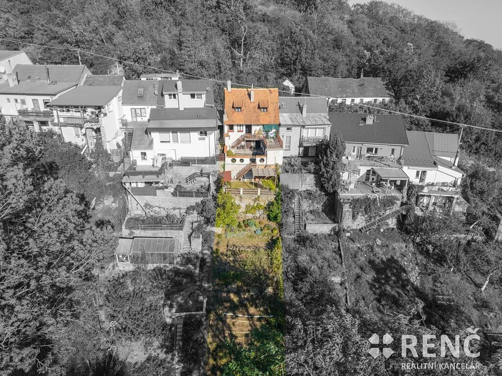 Nemovitost tvoří hlavní obytná část – jednopodlažní zděný dům s půdní vestavbou, uzavřený dvůr včetně dvou teras s krásným výhledem do okolí a terasovitá zahrada, která se svažuje do údolí k potoku Hloušek.