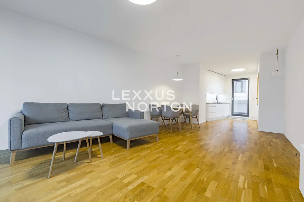 Byt disponuje vstupní chodbou, prostorným obývacím pokojem s plně vybaveným kuchyňským koutem (lednice, mrazák, mikrovlnná trouba, indukce, trouba, myčka nádobí) s jídelní částí a přímým vstupem na balkón a lodžii, 2 ložnice, přičemž jedna z nich má svou vlastní šatnu a přímý vstup na balkón. Dále disponuje pracovnou, koupelnou (vana a toaleta) a samostatnou toaletou. K bytu náleží sklep a garážové stání v ceně nájmu. Možnost pronájmu dalšího garážového stání za příplatek 2.000 Kč.