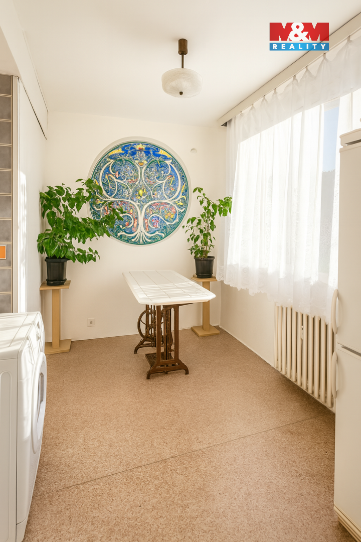Nabízíme k prodeji prostorný byt 3+1 o užitné ploše 78 m², situovaný v klidné části obce Jirkov. Byt se nachází v 5. patře sedmipodlažního panelového domu s výtahem. Dům prošel částečnou revitalizací, což přispívá k dobrému stavu. Dispozice bytu zahrnuje prostorný obývací pokoj, dvě ložnice, kuchyň, koupelnu a samostatné WC. K bytu náleží také sklepní kóje v podzemním podlaží. Výhodou je dostupnost veškeré občanské vybavenosti v blízkosti, včetně škol, obchodů a veřejné dopravy. Ideální pro rodiny hledající klidné bydlení s dostatkem prostoru. Neváhejte nás kontaktovat pro bližší informace a sjednání prohlídky.