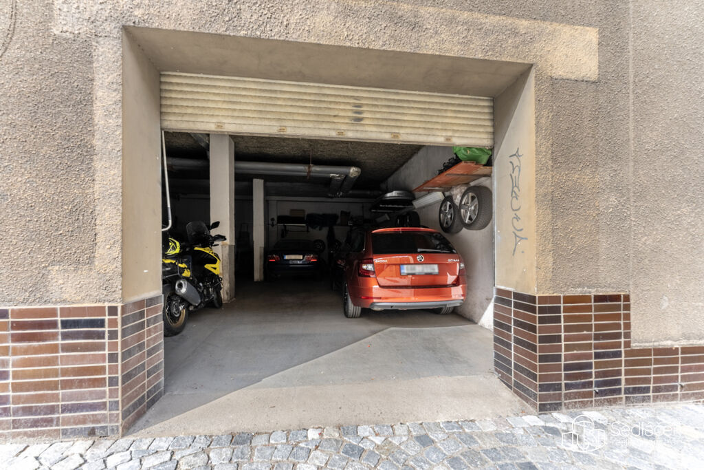 Velkou předností je garáž umístěná přímo v domě s pohodlným vstupem z domu. Je vybavena elektřinou a vodou, nabízí pohodlné parkování nejen pro automobil, ale i motorku a díky své velikosti může posloužit i jako menší dílna či praktický úložný prostor.