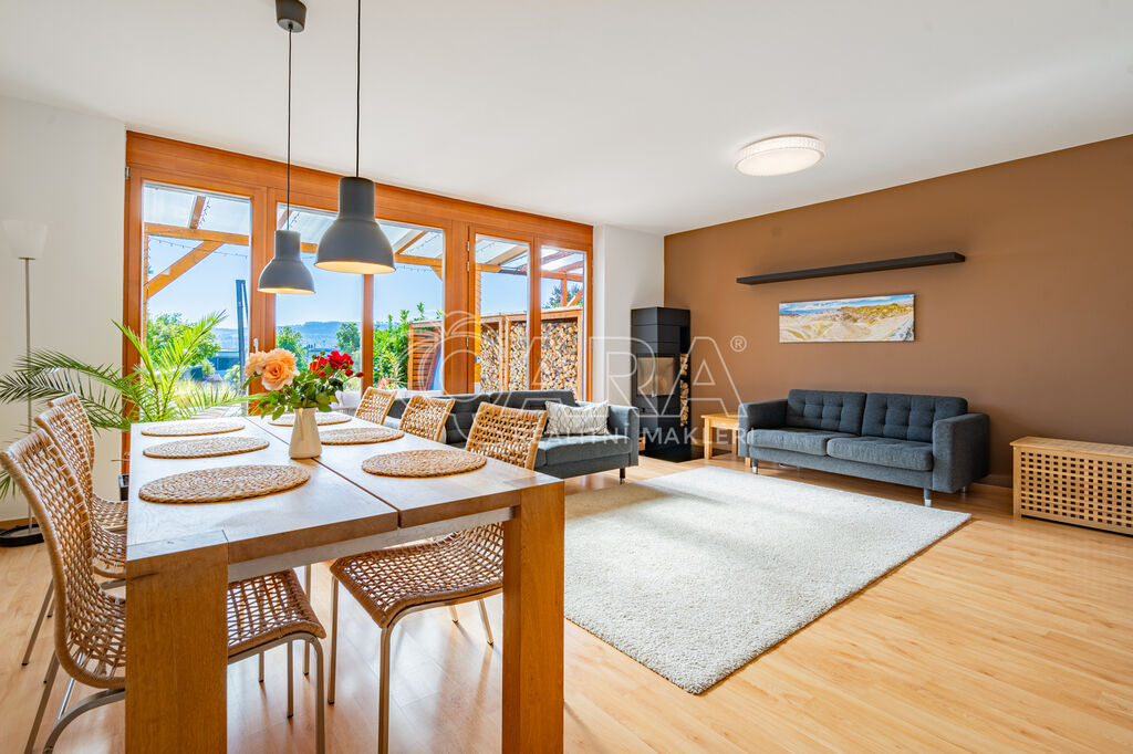 • Přízemí: prostorný obývací pokoj s kuchyňským koutem a jídelnou, krb, pracovna, toaleta, technická místnost
