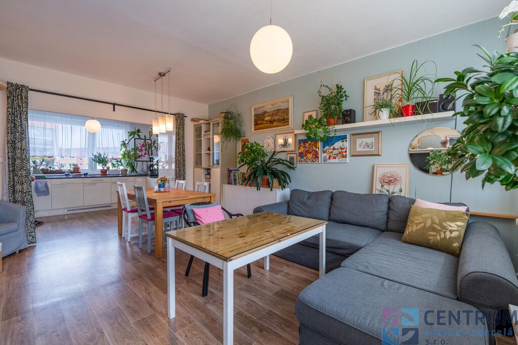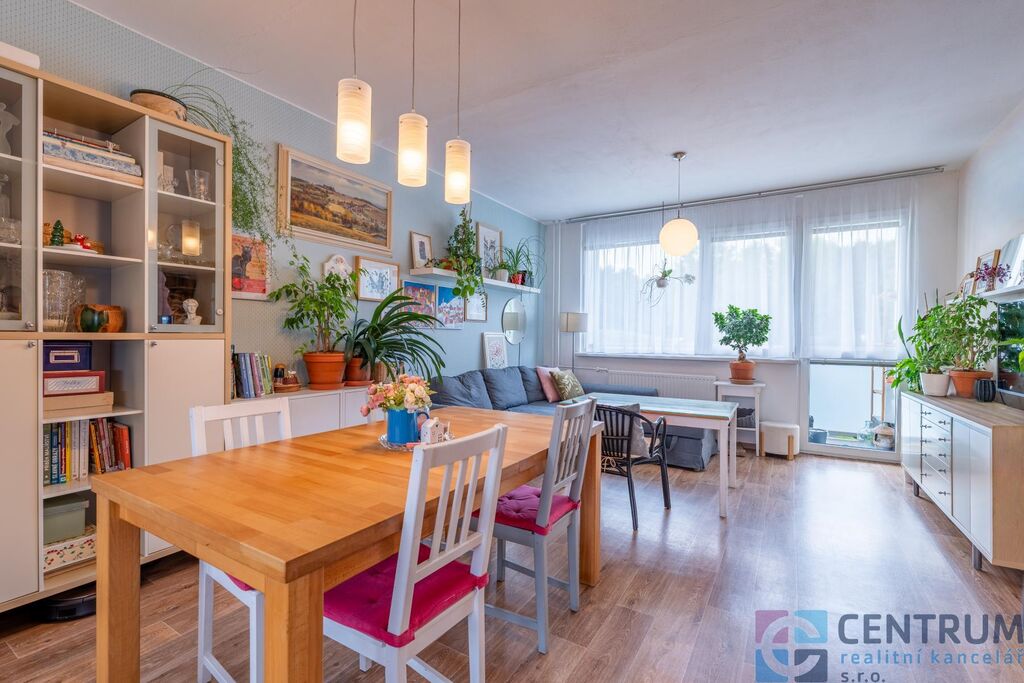 Z obývacího pokoje s velkým oknem je přístup na prostornou lodžii, která nabízí krásný výhled na okolní zeleň, dětská hřiště a sportoviště.
