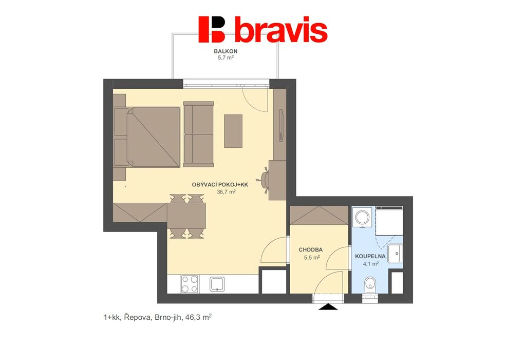 Nabízíme k pronájmu krásný byt v novostavbě o dispozici 1+kk s užitnou plochou 46m², který se nachází v žádané lokalitě Horní Heršpice.