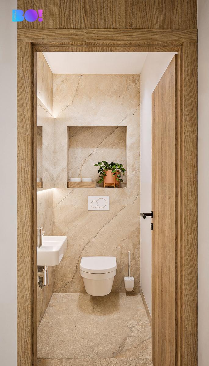Interiér je navržen v duchu přírodních materiálů a kvalitního zpracování – světlé dřevěné podlahy, velkoformátová dlažba, koupelny od studia Elements, sanita Villeroy & Boch a moderní kuchyně Miele se všemi vestavěnými spotřebiči.