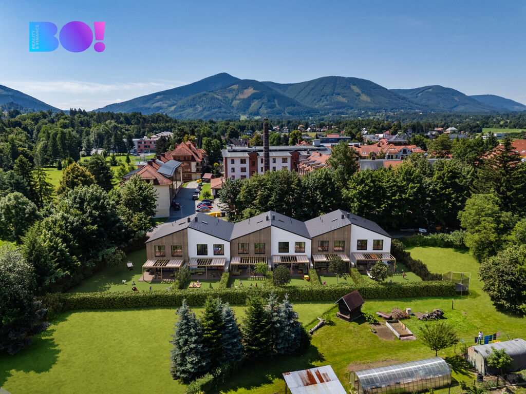 BO!reality Vám exkluzivně nabízí novostavbu řadového domu č. 6 v projektu Villas Čeladná, který propojuje moderní architekturu, energeticky úsporné standardy a jedinečnou atmosféru Beskyd.
