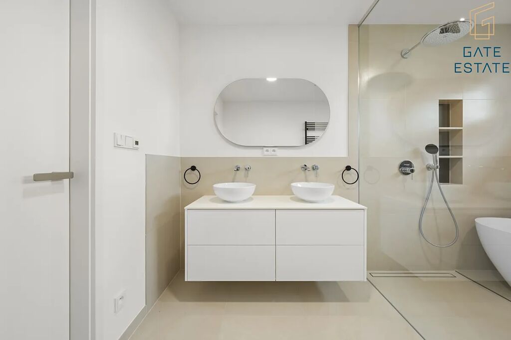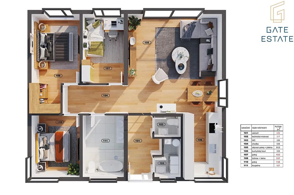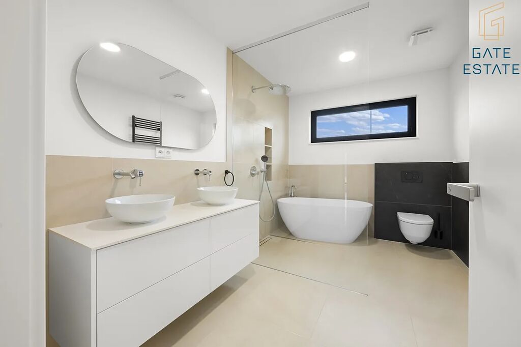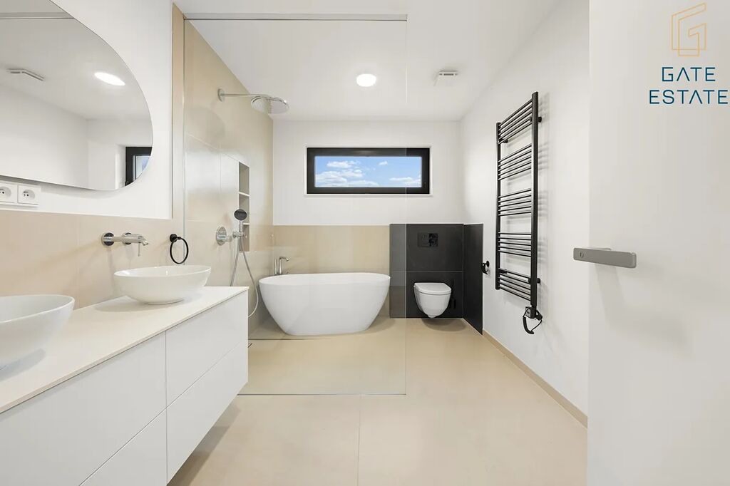 - hlavní koupelna s vanou, sprchovým koutem a WC: 9,37 m²