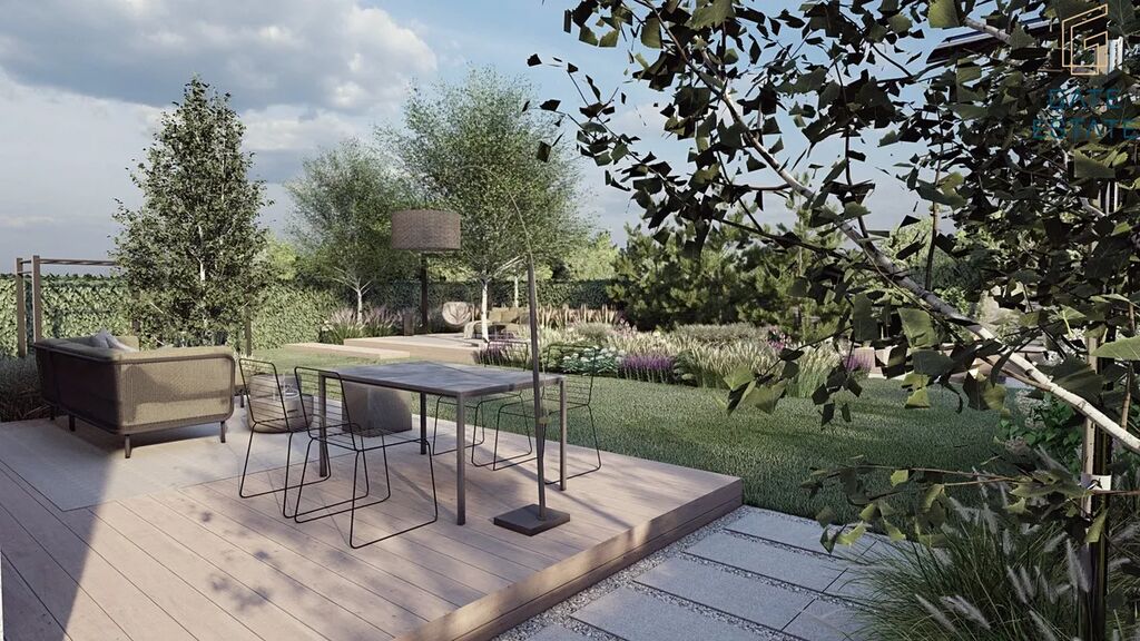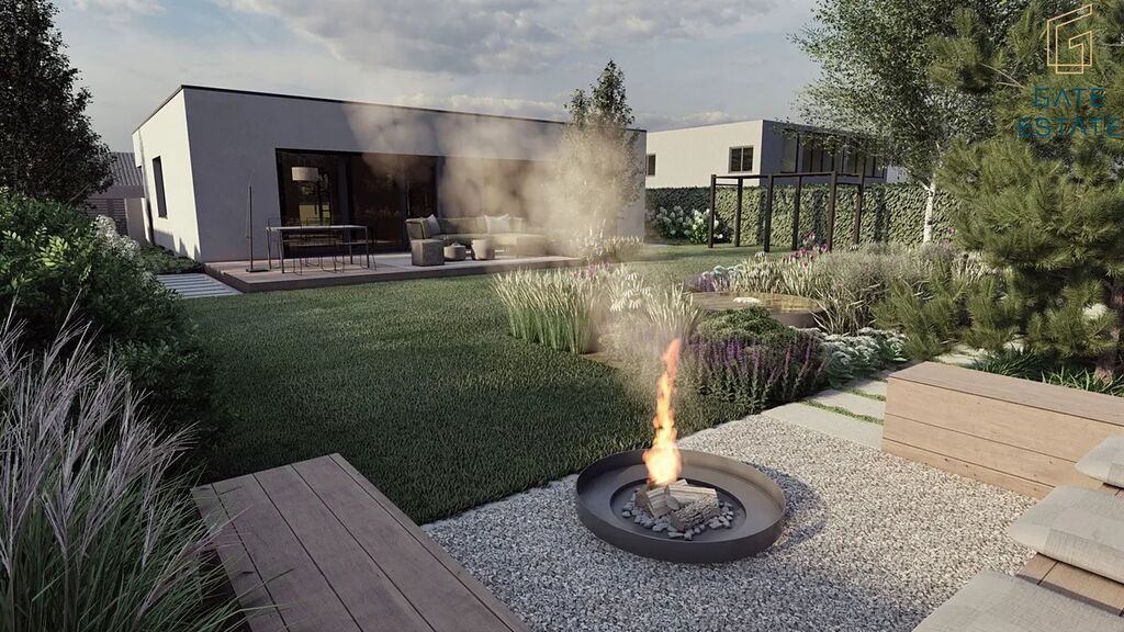 K domu je vypracovaný profesionální projekt zahrady od studia Rock&Flower, který zahrnuje návrh terasy, zpevněných ploch, osvětlení i zeleně. Samotná realizace zůstává na novém majiteli – může využít připravený návrh, nebo zahradu dotvořit podle vlastních představ.
