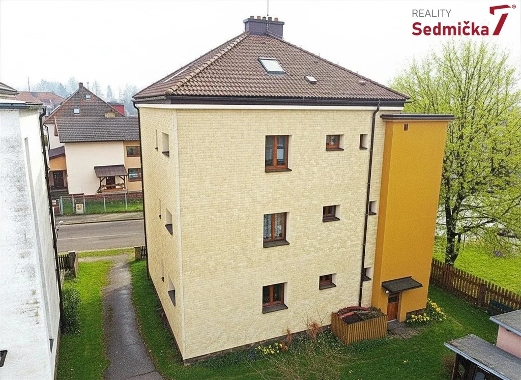 Byt je v 3. NP bytového domu se třemi byty. Má prostornou předsíň, kuchyň s jídelním koutem, dva pokoje, balkón, koupelnu s WC a v podkroví je velká jednoprostorová místnost.