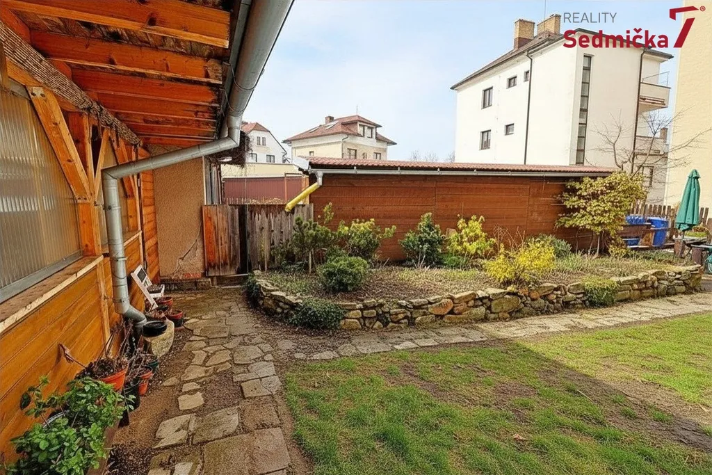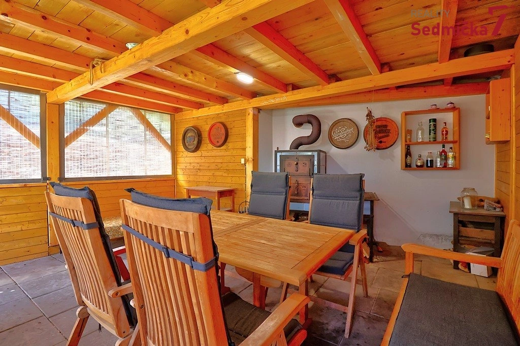 K bytu patří sklep, 1/3 společného sklepa, zahrada s dřevníkem, 2 parkovací místa, pergola s elektřinou, vodou, odpadem a kamny, majitel může navíc využívat 2 horní podesty na schodišti.