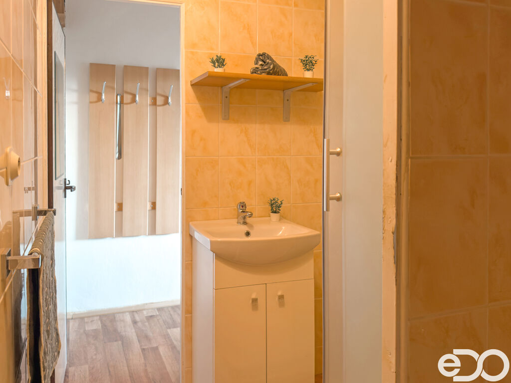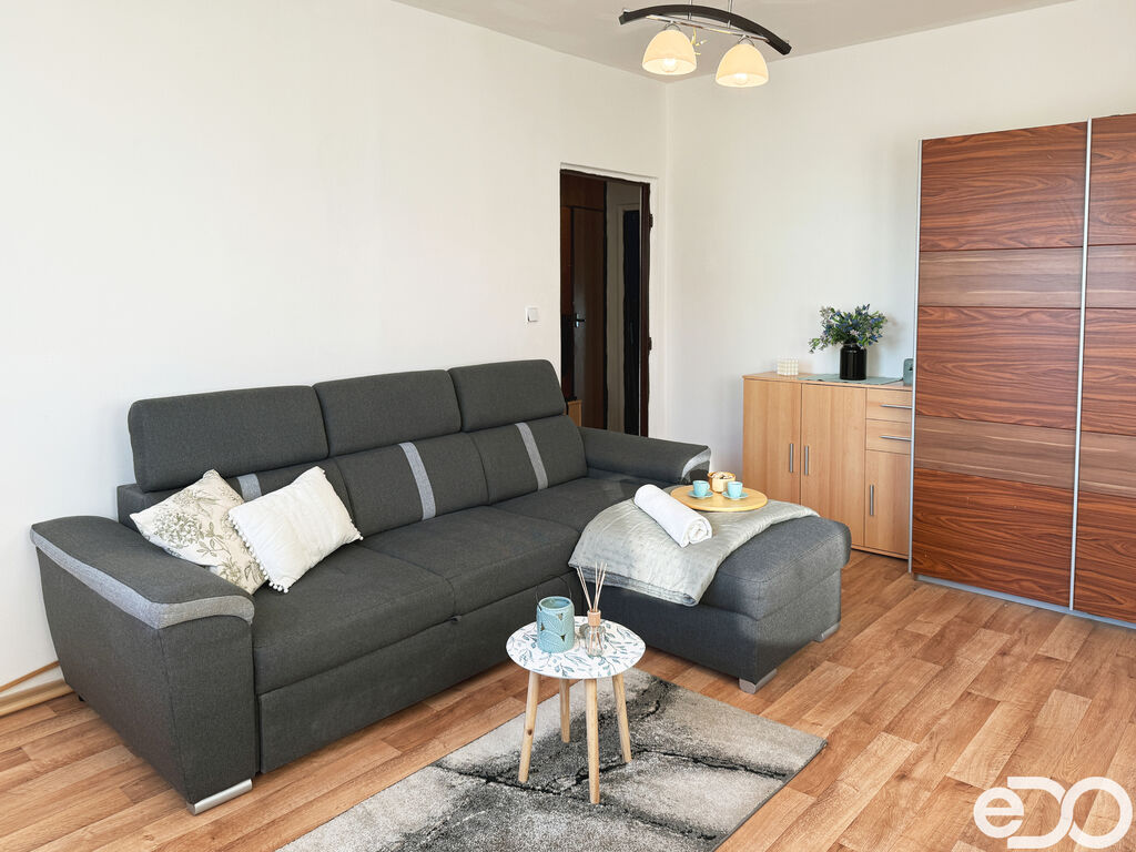 Realitní kancelář eDO Reality Vám exkluzivně nabízí prodej bytu 1+1 o výměře 35,7 m2 + sklep 2 m2. Byt má skvělou dispozici, velkou kuchyni (lze užívat i jako obývací pokoj s kuchyňským koutem) a druhý prostorný pokoj. K bytu se využívá lodžie v mezipatře. Byt je udržovaný, vhodný k nastěhování. Původní umakartové jádro bylo upraveno obkladem.