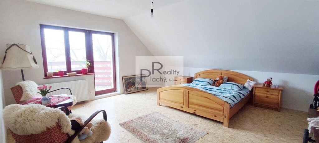 Dům disponuje 5 pokoji, kuchyní a dvěma koupelnami, nabízí pohodlné bydlení pro rodinu i dvougenerační využití.