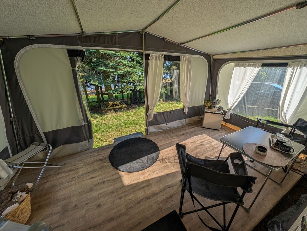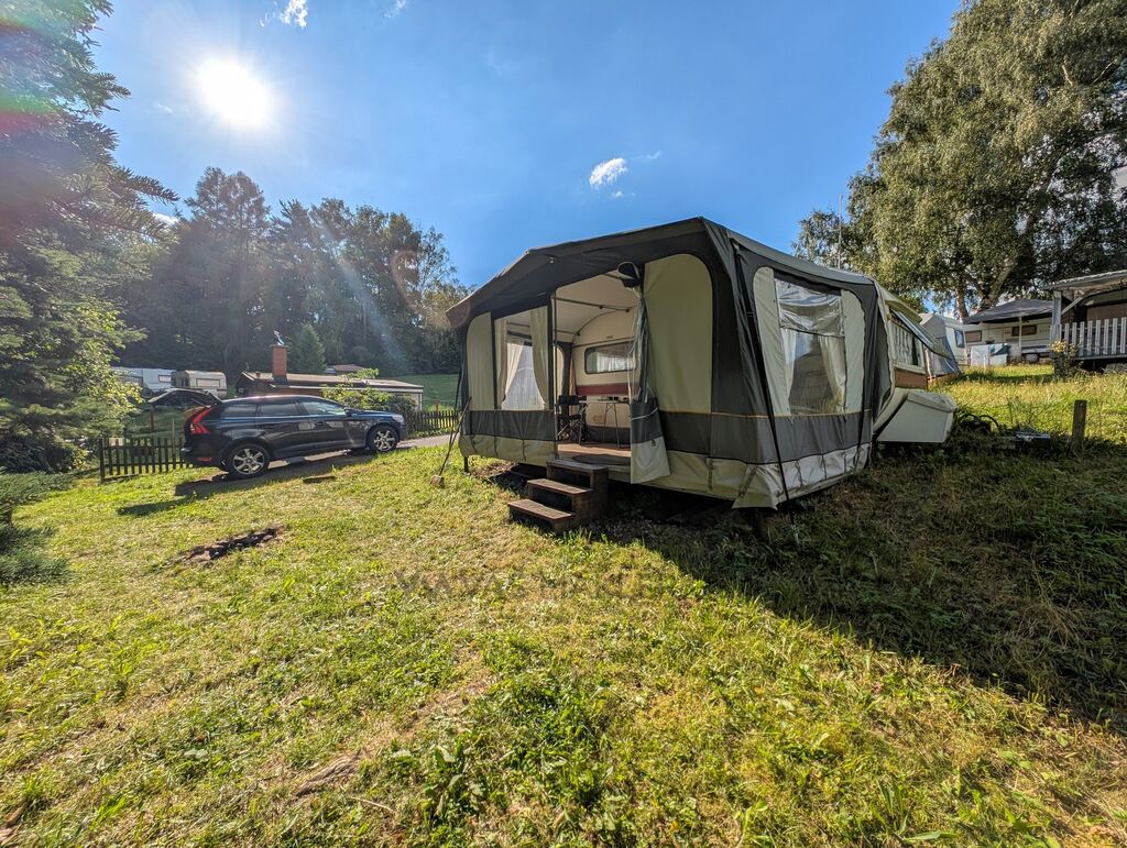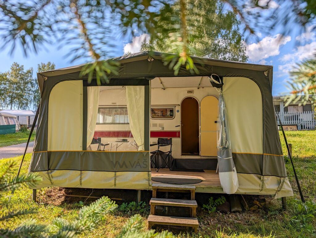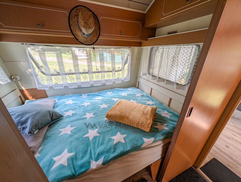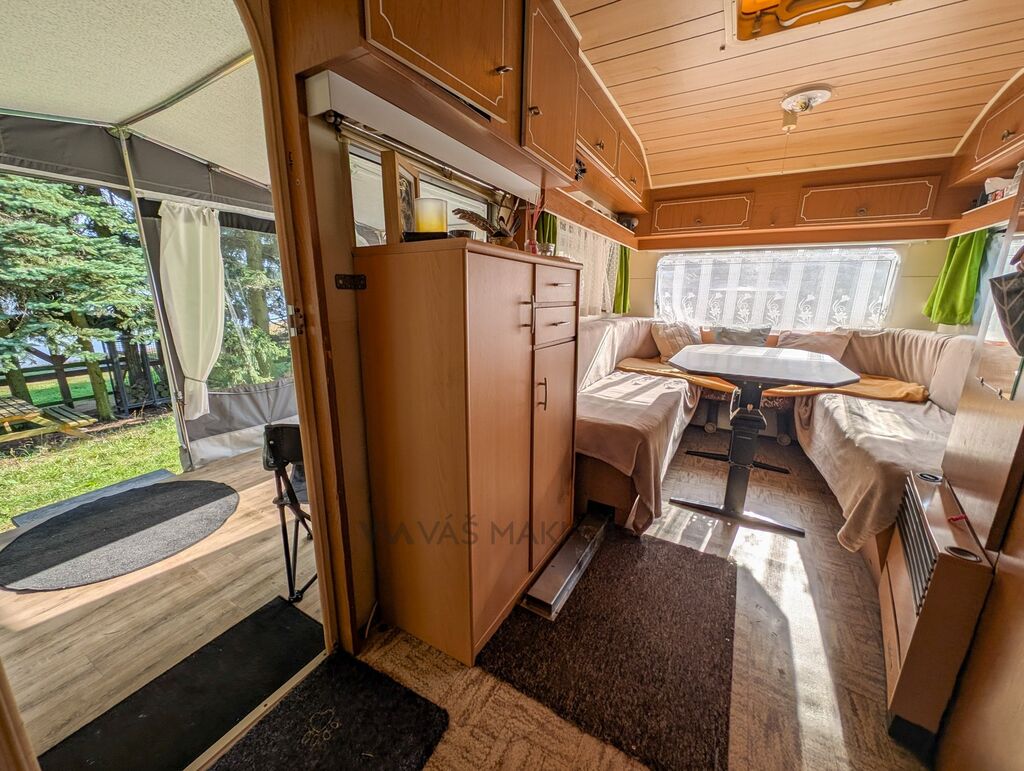 Ke karavanu přidáváme zánovní předstan, který je starý pouze 2 roky a výrazně tak rozšiřuje obytný prostor ven. Pokud se rozhodnete nechat karavan na jeho současném místě v Autokempu Seč Pláž, získáte navíc i dřevěné pódium potažené linem, které ještě více zpříjemní vaše venkovní posezení.
