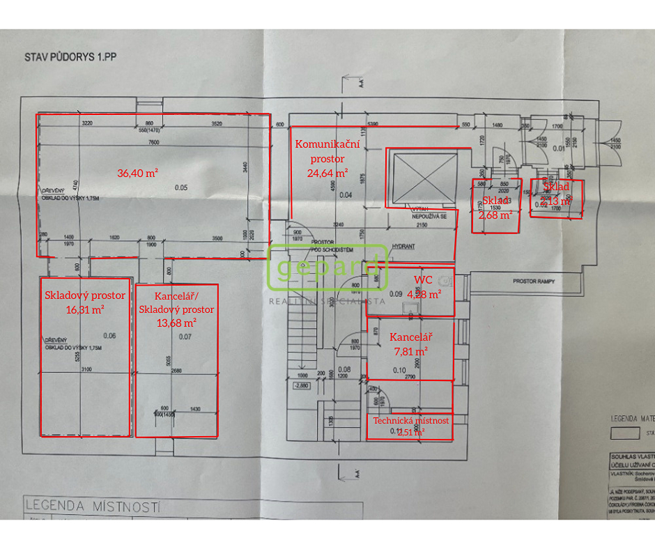 Sklad tvoří několik navazujících místností různé velikosti, které umožňují přehledné a efektivní rozdělení činností nebo zboží.Ve všech místnostech je položena keramická dlažba Výška stropů je 2,20 m. Vstup je přes chladírenské dveře, které dobře izolují prostor. Do skladu je možné vjet paleťákem, což usnadňuje manipulaci se zbožím.