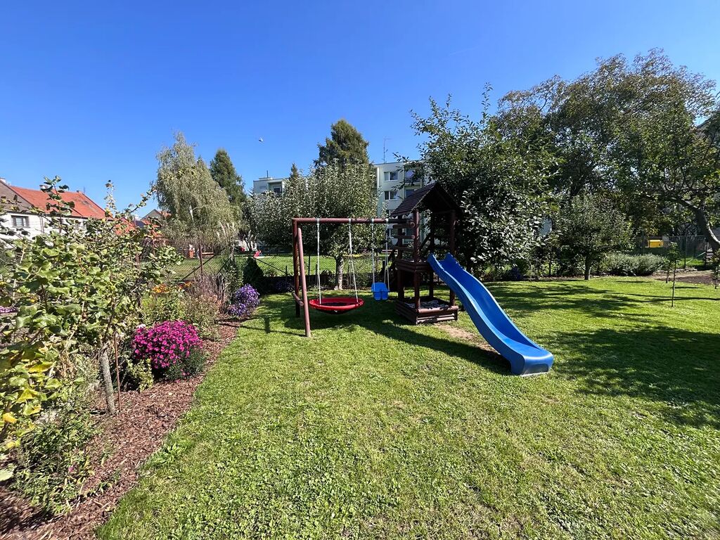 Dispozičně: vstupní zádveří, chodba, průchozí kuchyně s novou kuchyňskou linkou s oknem do dvora na východ, 3 pokoje směrem do ulice na západ, koupelna s vanou a sprchovým koutem, samostatné WC. Obytná plocha lze zvětšit o zbudování obytného podkroví v půdních prostorách. V suterénu jsou umístěny sklepy s vodárnou. Za domem na východní a jihovýchodní straně se nacházejí dvůr s menším zahradním domkem, průchod do garáže a užitková s okrasnou zahradou. Nájezd do garáže je přímo z ulice.