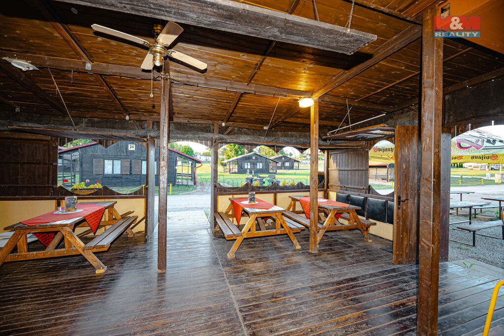 Samotná stavba je dřevěná konstrukce se zavedenou elektřinou a vodou, což poskytuje komfortní podmínky pro provoz. Součástí vybavení je také pípa připravená k čepování piva i nealkoholických nápojů, takže je možné okamžitě začít s obsluhou zákazníků.