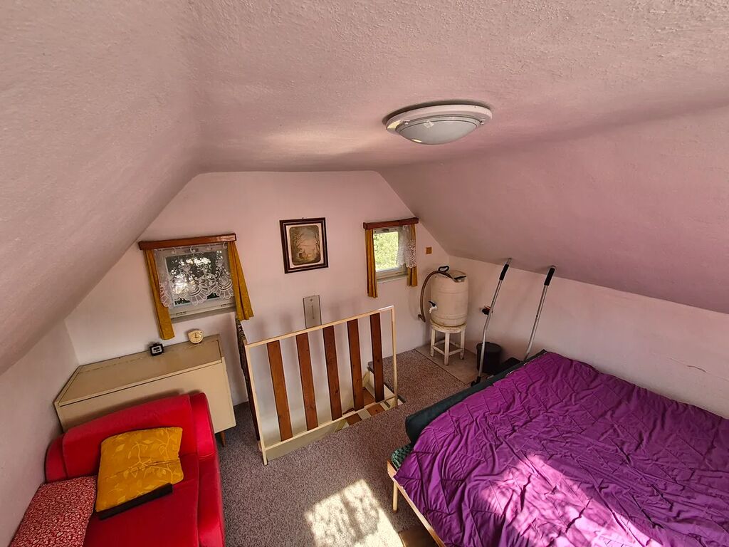 Jedná se o třípodlažní stavbu: v přízemí se nachází kuchyně s jídelnou. WC je situováno v 1.pp. 1.np disponuje místností o velikosti cca 4 m2, kde je možné si vychutnat odpolední kávu, dále obývacím pokojem s kamny a dřevěným schodištěm vedoucí do podkroví. V podkroví se nachází jeden samostatný pokoj s výhledem do okolí.
