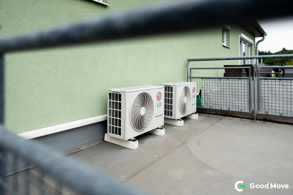 Komfort bydlení zvyšuje instalovaná klimatizace LG, která zajistí příjemné prostředí i v letních měsících. Podlahy jsou řešeny kvalitními, lepenými, dřevěnými parketami.