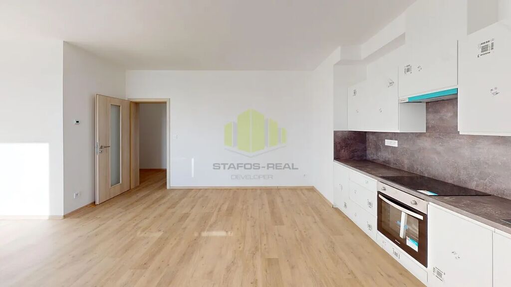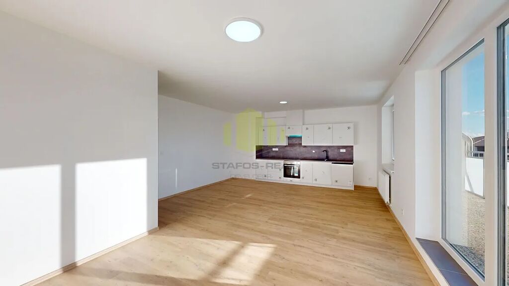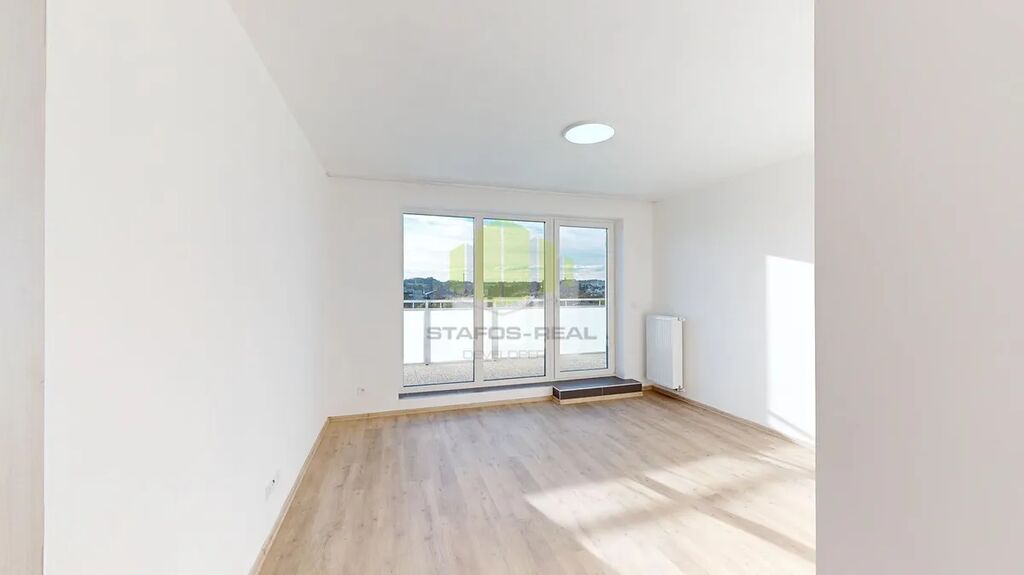 Nabízíme Vám byt 3+kk o ploše 92m2, který je korunován prostornou terasou o rozloze 24m2. Prostor je promyšleně rozdělen na obývací pokoj s moderně vybaveným kuchyňským koutem, přímosousedící ložnici, přičemž z obou místností je vstup na terasu, dále druhou samostatnou ložnici orientovanou na severní stranu s výhledem na město, vstupní halu, šatnu, koupelnu a samostatné WC. Vybavení kuchyňské linky zahrnuje indukční desku, troubu, myčku na nádobí a lednici s mrazákem. V koupelně naleznete vanu, umyvadlo, otopný žebřík a přípravu pro pračku.