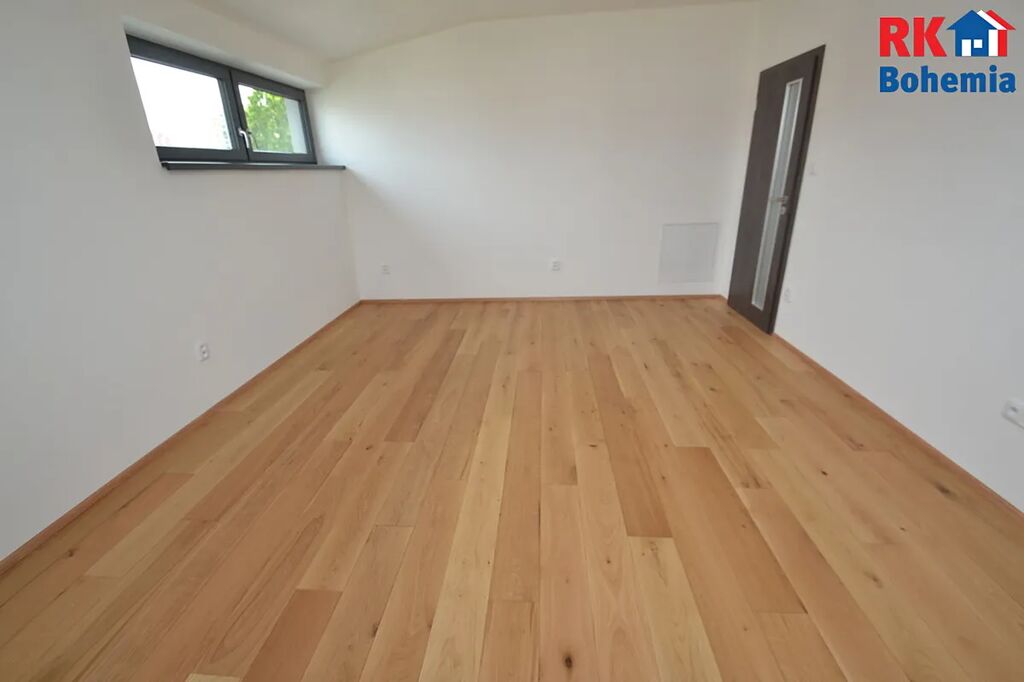 Podlahy v obytných místnostech jsou dřevěné dubové s podlahovým vytápěním. V koupelně velkoformátová dlažba. Zařizovací předměty jsou značky Villeroy and Boch. Obložkové dveře s prosklením.
