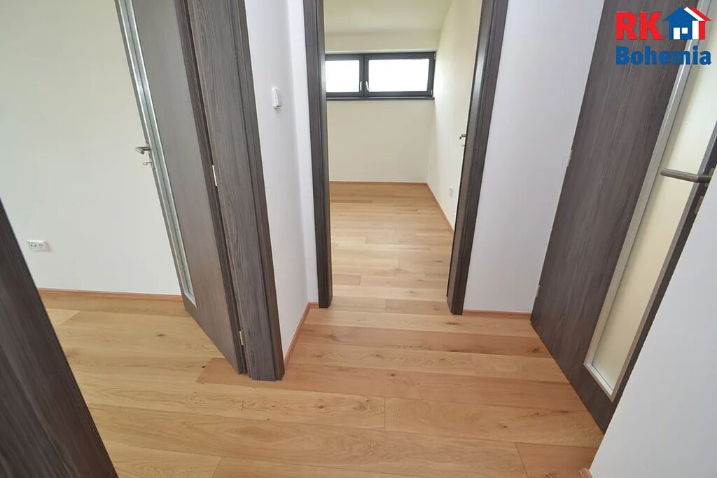 Nový byt se nachází ve 3. NP třípodlažního domu s výtahem z roku 2024, má výměru 73,7 m2 a terasu (9,3 m2) přístupnou z obývacího pokoje. U vstupu zádveří (4,76 m2), koupelnu se sprchou a toaletou (4,42 m2), samostatné WC (1,7 m2), obývací pokoj s kuchyňským koutem (28,5 m2), ložnici (12,42 m2) a velký rohový pokoj (19,75 m2), který lze rozdělit v případě potřeby na dva dětské pokoje či pokoj s pracovnou, šatnou. Ložnice odděluje klidová chodba 2,15m2. Z ložnice je vstup na balkon 7,8m2.