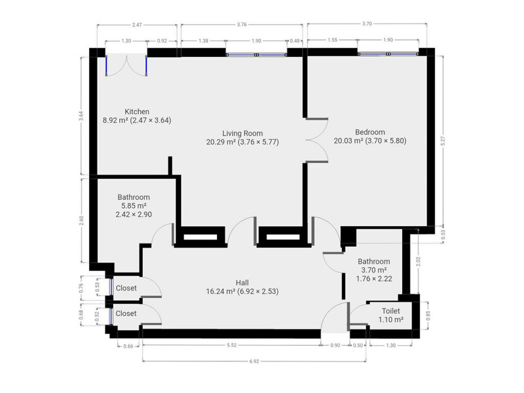 Byt se nabízí plně vybavený. Kuchyňská linka disponuje lednicí, myčkou, vestavěnou elektrickou troubou, varnou deskou, digestoří a barovým stolem s židlemi. Obývací část je zařízená pohovkou, konferenčním stolkem, psacím stolem a jídelním stolem s židlemi. V ložnici najdeme postel a šatní skříň. Velkou výhodou bytu jsou dvě koupelny, přičemž v jedné najdeme vanu, pračku a umyvadlo. Ve druhé koupelně se nachází sprchový kout a umyvadlo. Toaleta je oddělená. V bytě jsou i dvě komůrky a prostorná předsíň.