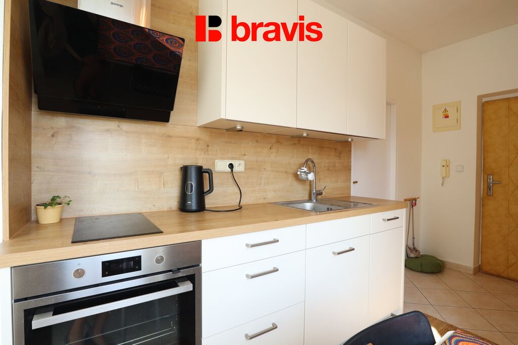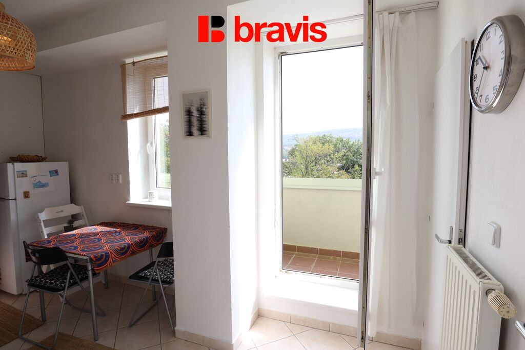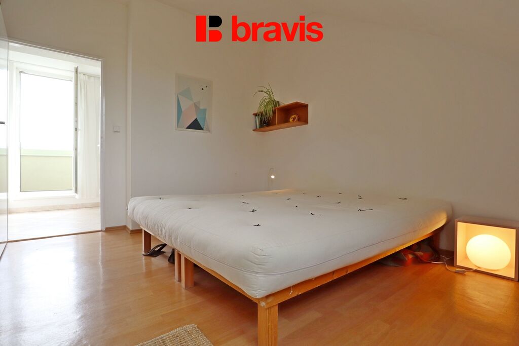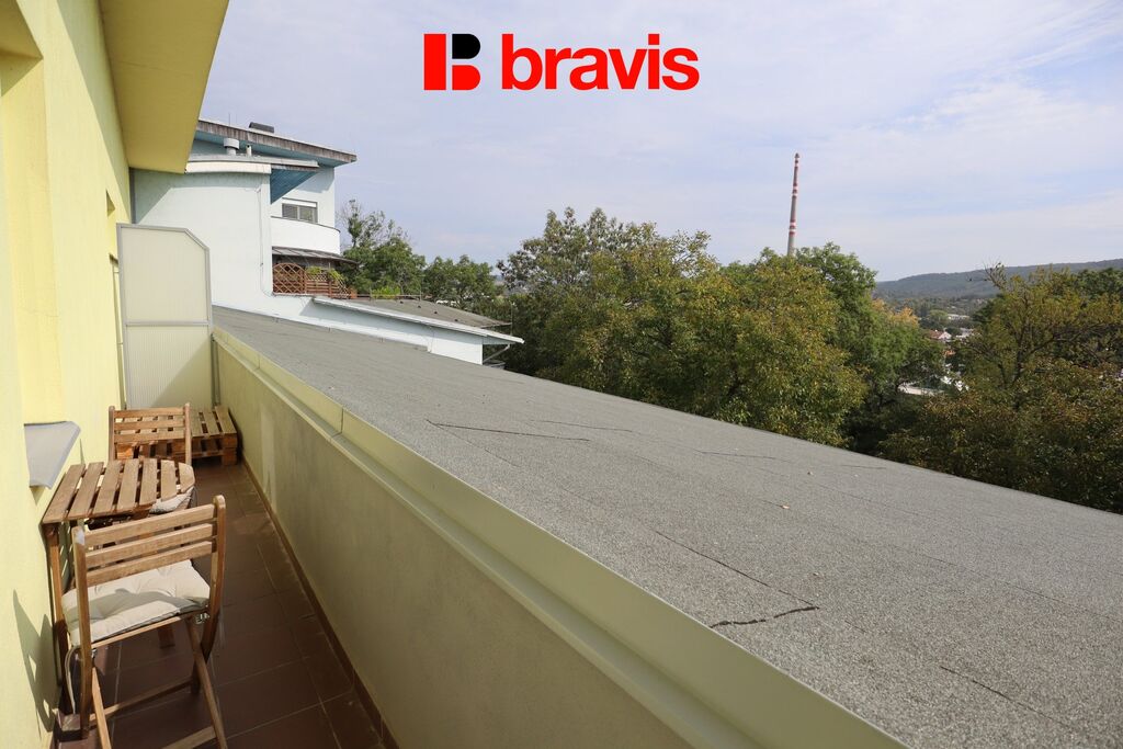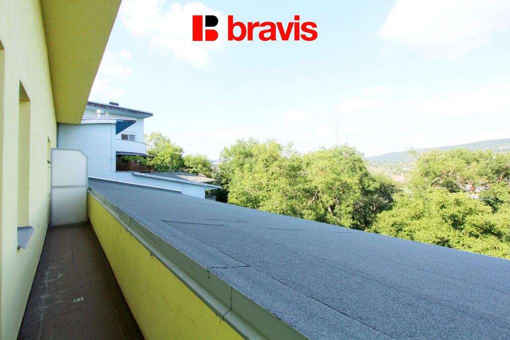 Podkrovní byt o velikosti 49 m², který se nachází ve 4. podlaží cihlového domu bez výtahu, s balkonem skýtajícím krásný výhledem do zeleně, údolí řeky Svitavy a na Hády. K využití je také sdílená zahrada pouze pro obyvatele domu.