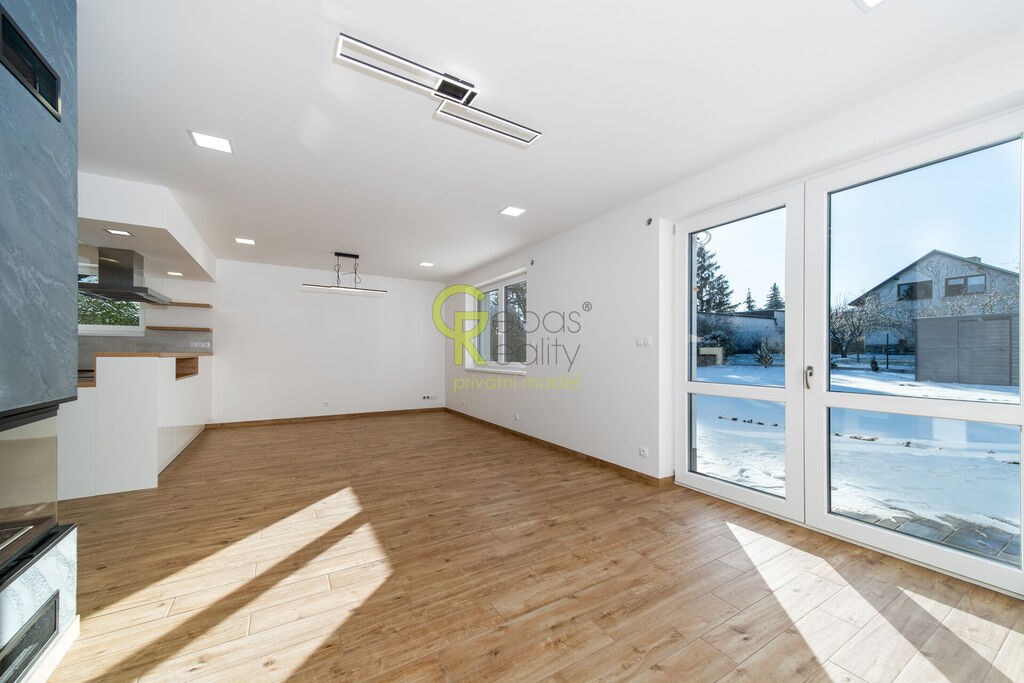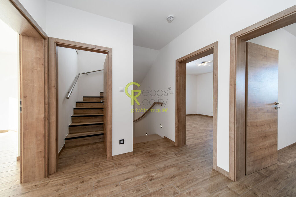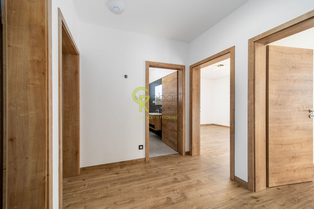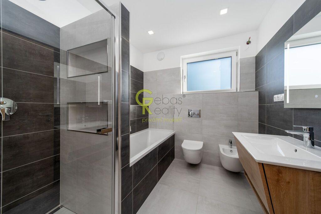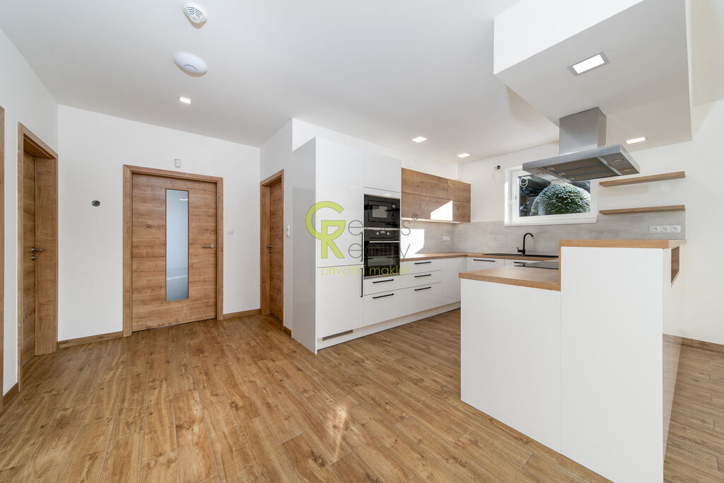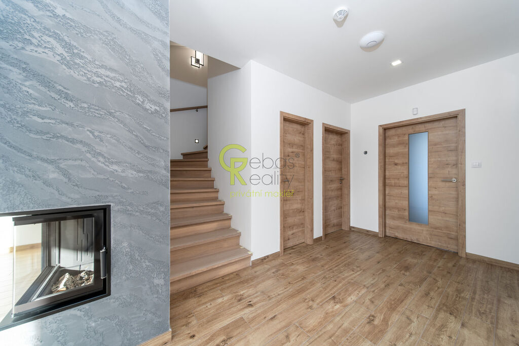 Nabízíme k pronájmu moderní rodinný dům 6+kk s užitnou plochou 186 m² a plně obytným podkrovím 50 m² na pozemku o velikosti 551 m² v klidné ulici Dobřichovská, Praha 21 – Újezd nad Lesy. Dům je novostavba z kvalitních materiálů a nabízí komfortní rodinné bydlení s důrazem na moderní technologie a úsporný provoz. V přízemí se nachází prostorný a světlý obývací pokoj s krbovými kamny a vstupem na zahradu, moderní kuchyňská linka plně vybavená spotřebiči Electrolux a AEG a dvě koupelny s vanou, sprchovým koutem, toaletou i bidetem. Podlahové vytápění v obou podlažích zajišťuje tepelné čerpadlo vzduch/voda, okna jsou plastová s trojskly, schodiště dubové a podlahy keramické a vinylové. Dům je vybaven chytrou domácností (pojezdová brána Somfy IO, Tahoma Switch s ovládáním přes mobil, venkovní žaluzie) a chráněn zabezpečením Jablotron a kamerovým systémem. Úsporný provoz podporuje systém Aquaprof s nádrží 10 m³ pro využití dešťové vody k zalévání a splachování toalet. Pozemek je oplocen, plochy jsou z elegantní dlažby Citytop a k dispozici je také zahradní domek 3×4 m. Zahrada je již plně zatravněná a připravena k okamžitému užívání. Dům je ihned k nastěhování a nabízí skvělou kombinaci komfortu, bezpečí a nízkých provozních nákladů v příjemné lokalitě s dobrou dostupností do centra Prahy.