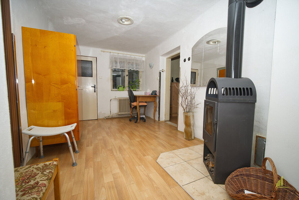 Dispozice domu v přízemí nabízí prostornou halu s krbem, kuchyň a dva pokoje, které slouží jako obývací pokoj a ložnice. Dále je chodba s koupelnou se sprchovým koutem, oddělené WC a prádelna. Z chodby se dostanete na dvorek, kde se nachází kůlna a garáž. V prvním patře domu se nachází předsíň a jeden pokoj, se kterého se dostanete na terasu. Z předsíně je vchod na malou půdu.