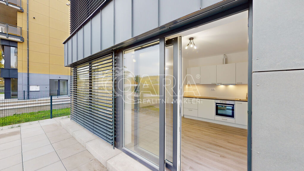 Tento světlý byt o podlahové ploše 39,5 m² (plus terasa cca 36 m²) se nachází ve prvním podlaží novostavby moderního cihlového nízkoenergetického domu s bezbariérovým vstupem. Nemovitost je vybavena novou kuchyňskou linkou s vestavěnými spotřebiči (trouba, indukční deska, lednice, odsavač par).