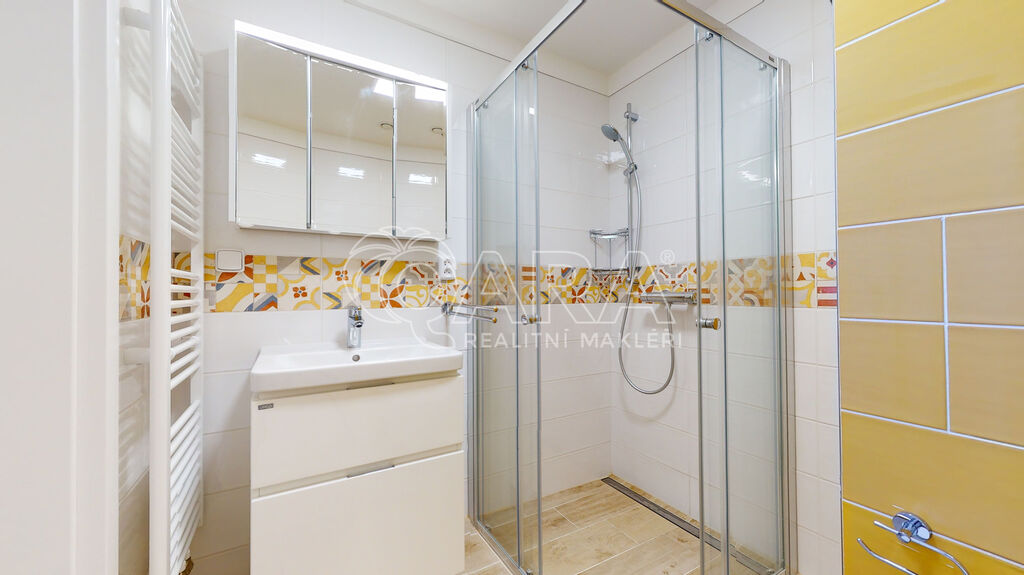 Soukromí zajišťují moderní venkovní žaluzie na elektrické ovládání. K bytu dále náleží sklep na stejném podlaží domu.