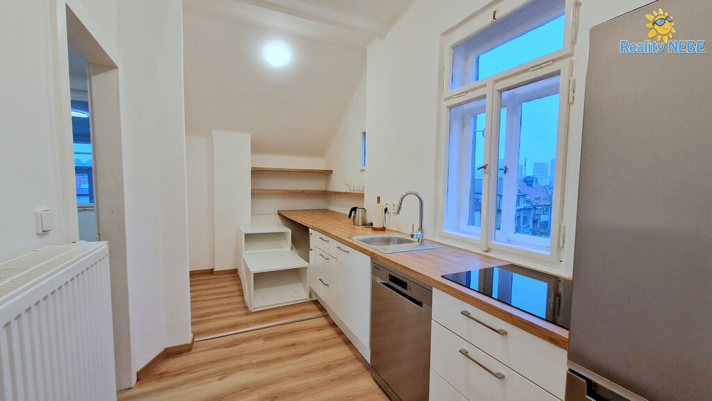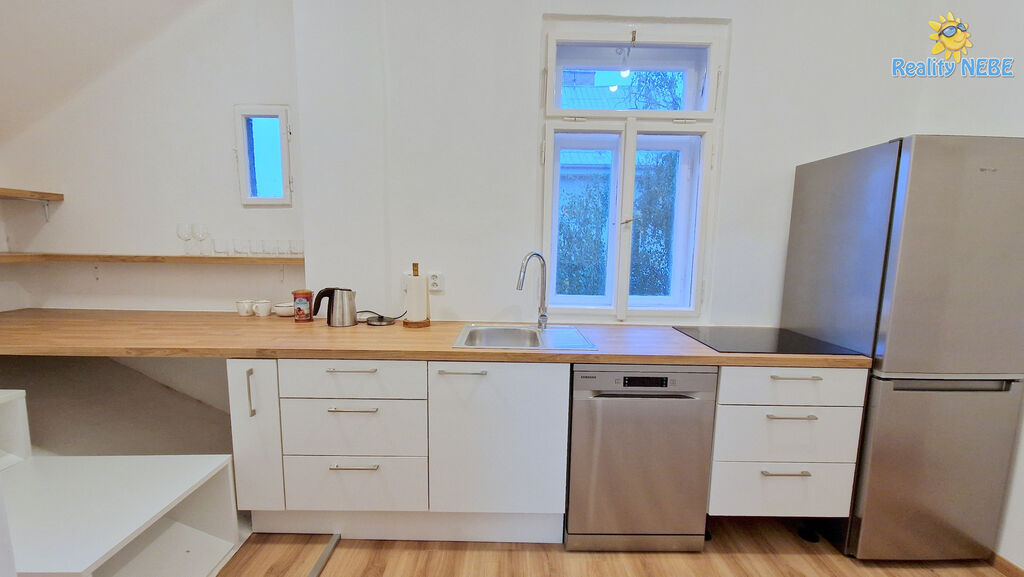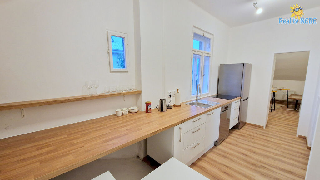 Jedná se o byt v celém 2. patře rodinného domu. Byt je po kompletní rekonstrukci, která se nyní dokončuje. Jsou zde nové podlahy, nově vymalováno, nová kuchyňská linka na míru s vestavěnou myčkou. V bytě je nové topení plynovým kotlem, které rozvádí teplou vodu do radiátorů. Součástí je i lednice a pračka.