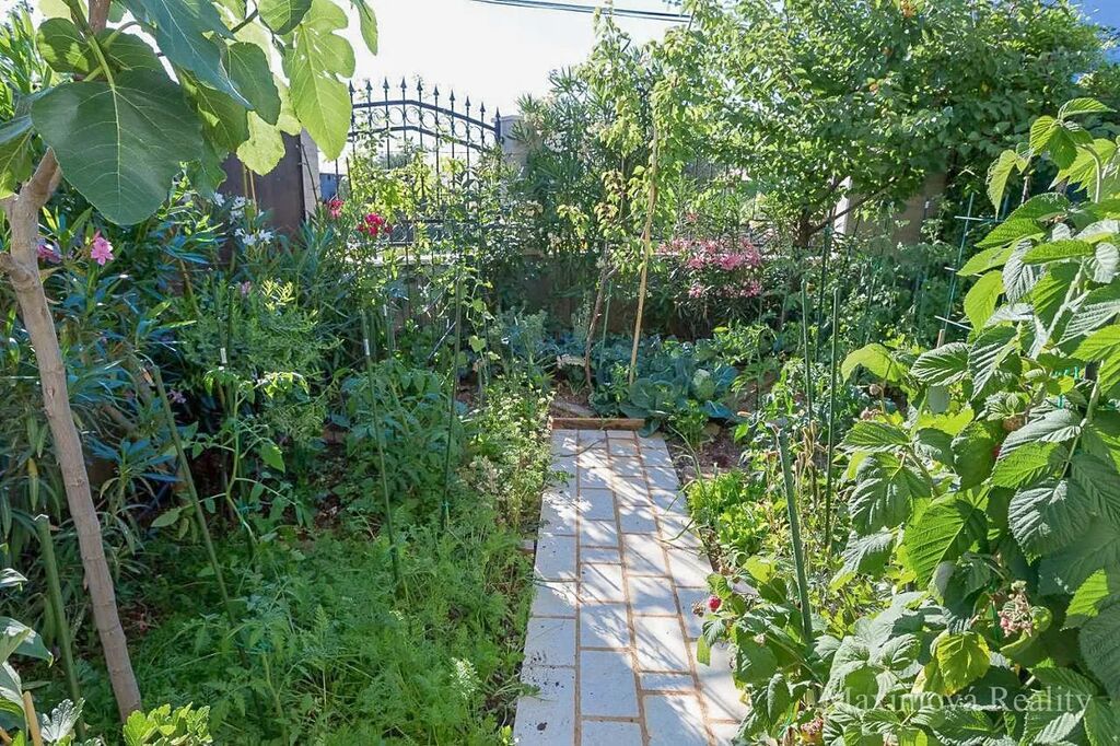 Zastavěná plocha domu a nádvoří je 162 m2, zahrada 293 m2. Garáž 31 m2, pozemek okolo garáže 94 m2.