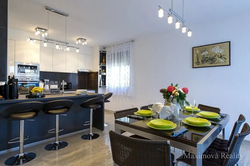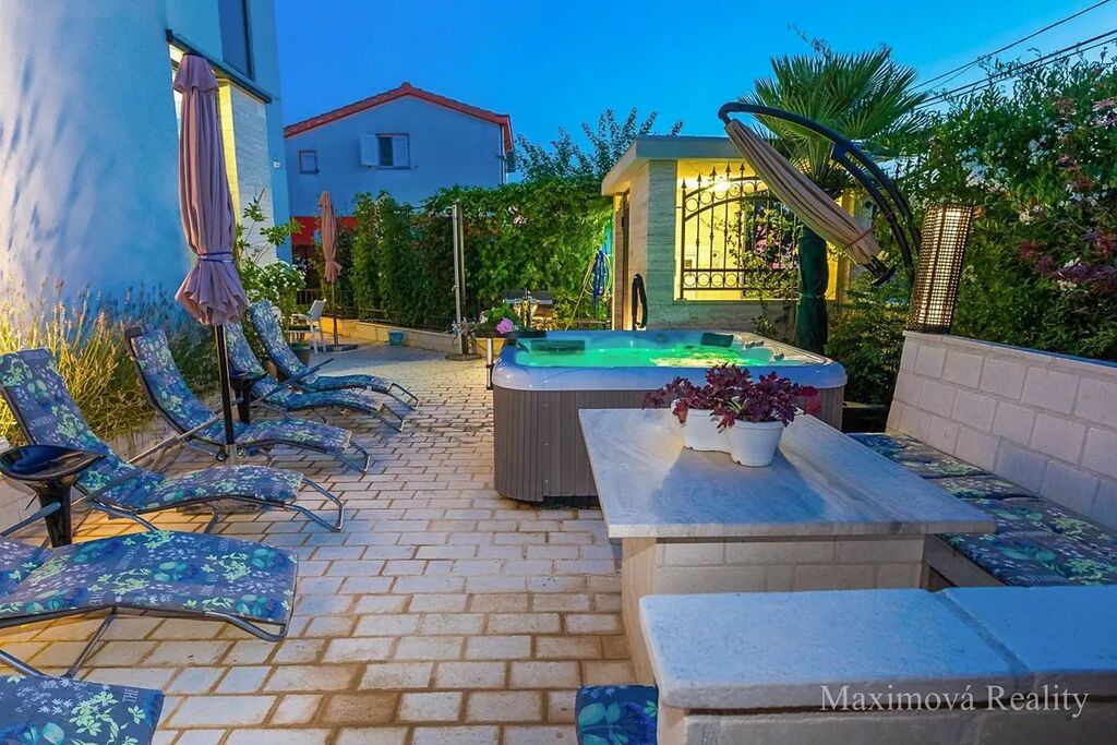 Exkluzivně vám nabízíme prodej luxusního apartmánového domu o ploše 330 m2 se 3 apartmány v obci Sukošan v Chorvatsku, 10 minut chůze od pláže. Dům se prodává plně vybavený (kromě vířivky a jízdních kol) a připravený k bydlení či pronajímání. Stavba byla dokončena v roce 2015, kolaudace bude dokončena v následujících měsících. Stavba byla dokončena ve vysokém standardu s použitím drahých materiálů, zejména kamene a mramoru. Světlé interiéry a moderní vybavení doplňuje okrasná zahrada s grilem a posezením, ideální pro odpočinek a relaxaci. Dům lze využít pro vícegenerační bydlení, pronájem celé nemovitosti i pronájem jednotlivých apartmánů. Tato nemovitost poskytuje skvělou příležitost pro život a zároveň investici v jednom z nejžádanějších a malebných míst v Chorvatsku.