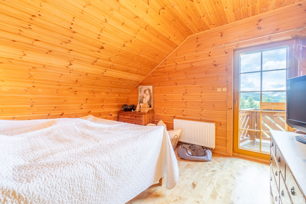 Prodej výjimečného srubu u Klínovce – jen 400 m od lanovky a s jedinečnými výhledy.