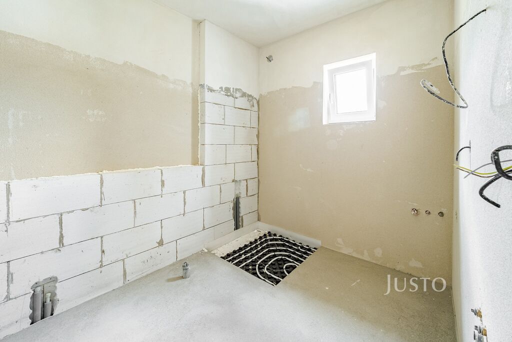 S pomocí termostatu si v bytě pohodlně nastavíte teplotu podlahového vytápění. Teplo do něj vhání dostatečně výkonný plynový kondenzační kotel pro celý dům.