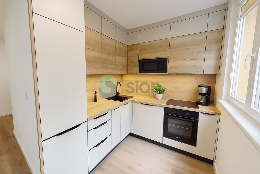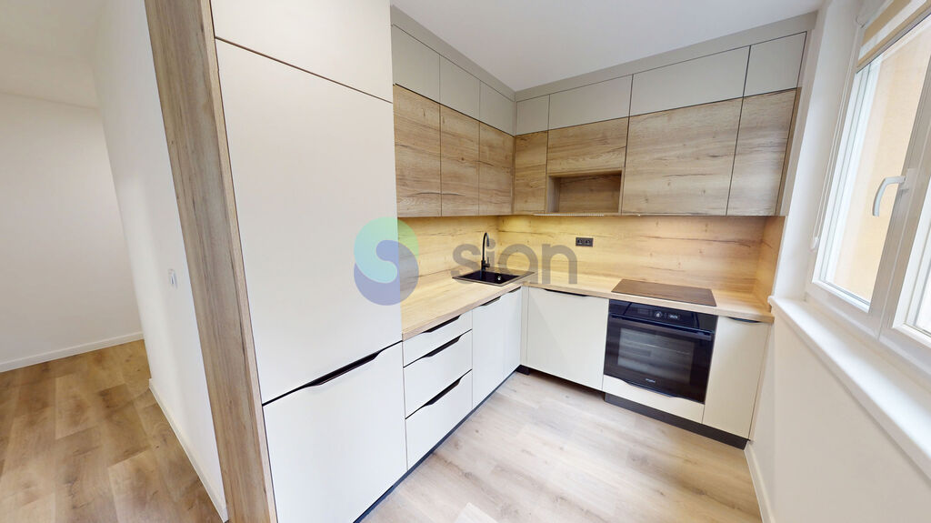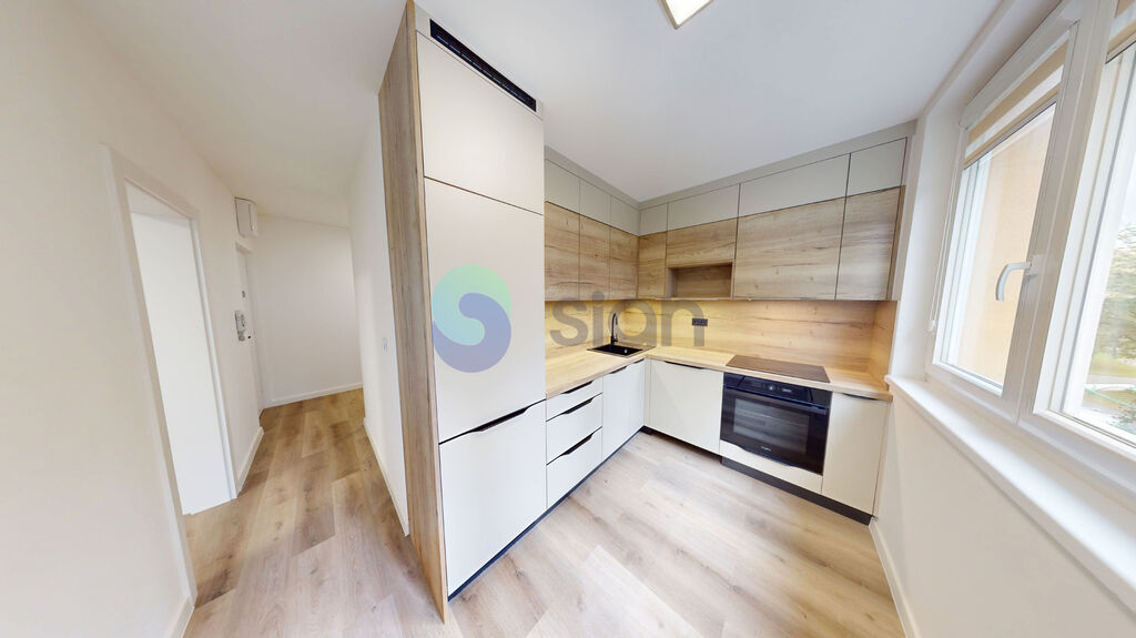 V bytové jednotce byla právě dokončena kompletní rekonstrukce. Nová kuchyňská linka ve tvaru L, vyrobená na míru, je vybavena vestavěnými spotřebiči (lednice, mrazák, myčka, indukční varná deska, trouba) a nabízí dostatek úložného i pracovního prostoru. Původní jádro bylo vyzděno, čímž vznikla koupelna s vanou, toaleta je samostatná a má i svoje malé umyvadlo vč. skříňky dělané na míru. V celém bytě jsou nové podlahy (vinyl), omítky a rozvody (elektřina v mědi). Nové jsou také dveře s obložkami, svítidla a rolety den a noc na oknech. Byt je uklizen a připraven k okamžitému nastěhování. Veškeré práce byly provedeny kvalitně, pečlivě a se zárukou na případné vady. Uvedené vybavení nábytek a doplňky jsou pouze vizualizací jak může Váš domov vypadat a jak využít skvělý potenciál prostoru.