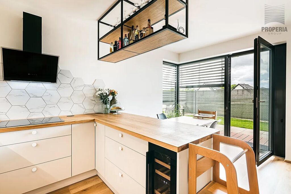 Nevšední novostavbu z r. 2023 s dispozicí 5+kk o CP 194m2 v této obci zřetelně definuje čistý stavební styl a prémiová kvalita. Je kompletně vybavený vestavěným nábytkem.