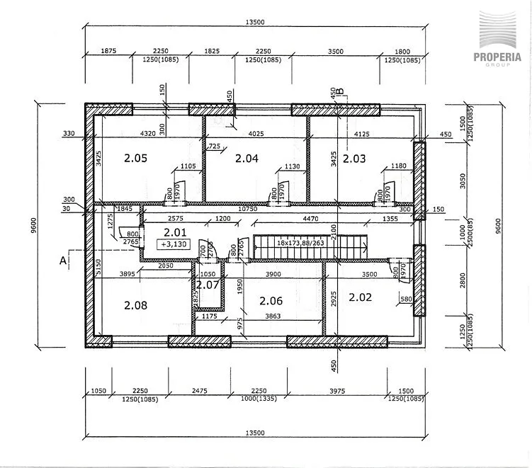 II.NP – chodba 22,5 m2, pokoje 14,1 + 13,8 + 14,8 m2, ložnice 15,4 m2, šatna 10,2 m2, koupelna 12,6 m2 a WC 1,9 m2.