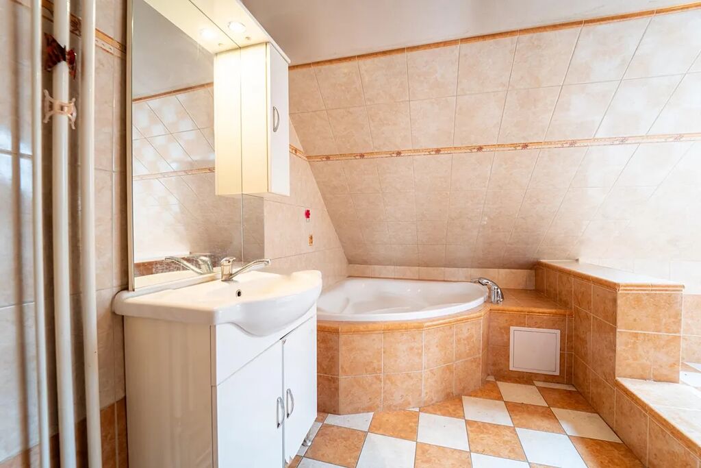 Technicky je dům připravený k okamžitému nastěhování. Plynový kotel s radiátory v obou podlažích, krb v přízemí, krbová kamna v patře, nová elektřina v mědi, voda v plastu, kanalizace samozřejmostí. Ohřev vody řeší bojler, střecha je ze šindele. V přízemí jsou dřevěná okna, v bytě plastová. Dům je bez zástav a břemen, financovat jej lze i hypotékou. Energetický štítek se zpracovává, proto prozatím uvádím tř. G.