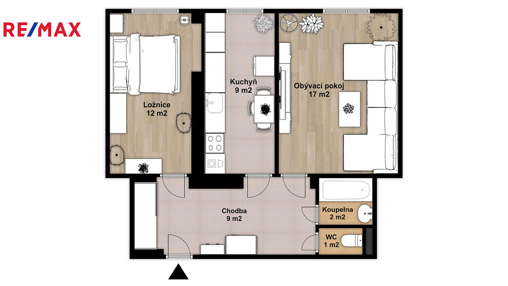 Podlahová plocha bytu 50 m² + sklep o velikosti 3 m², který nabízí dodatečný úložný prostor.