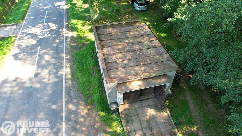 Zajímavostí této nabídky je, že naproti přes cestu můžete získat i samostatně stojící garáž na vlastním pozemku. Garáž o ploše 24 m² je postavena z pevného zdiva, s plechovou střechou a betonovou podlahou. Pozemek pod ní má dalších 49 m².