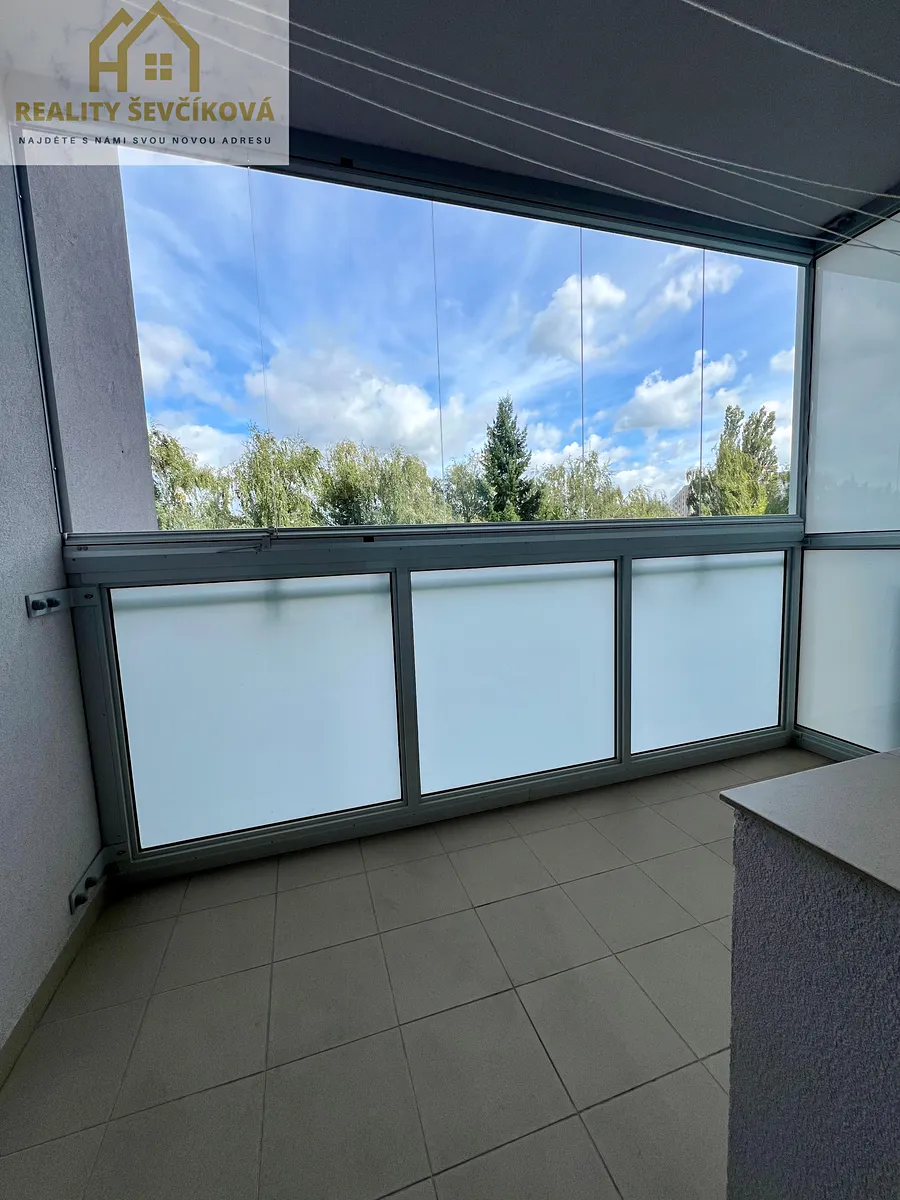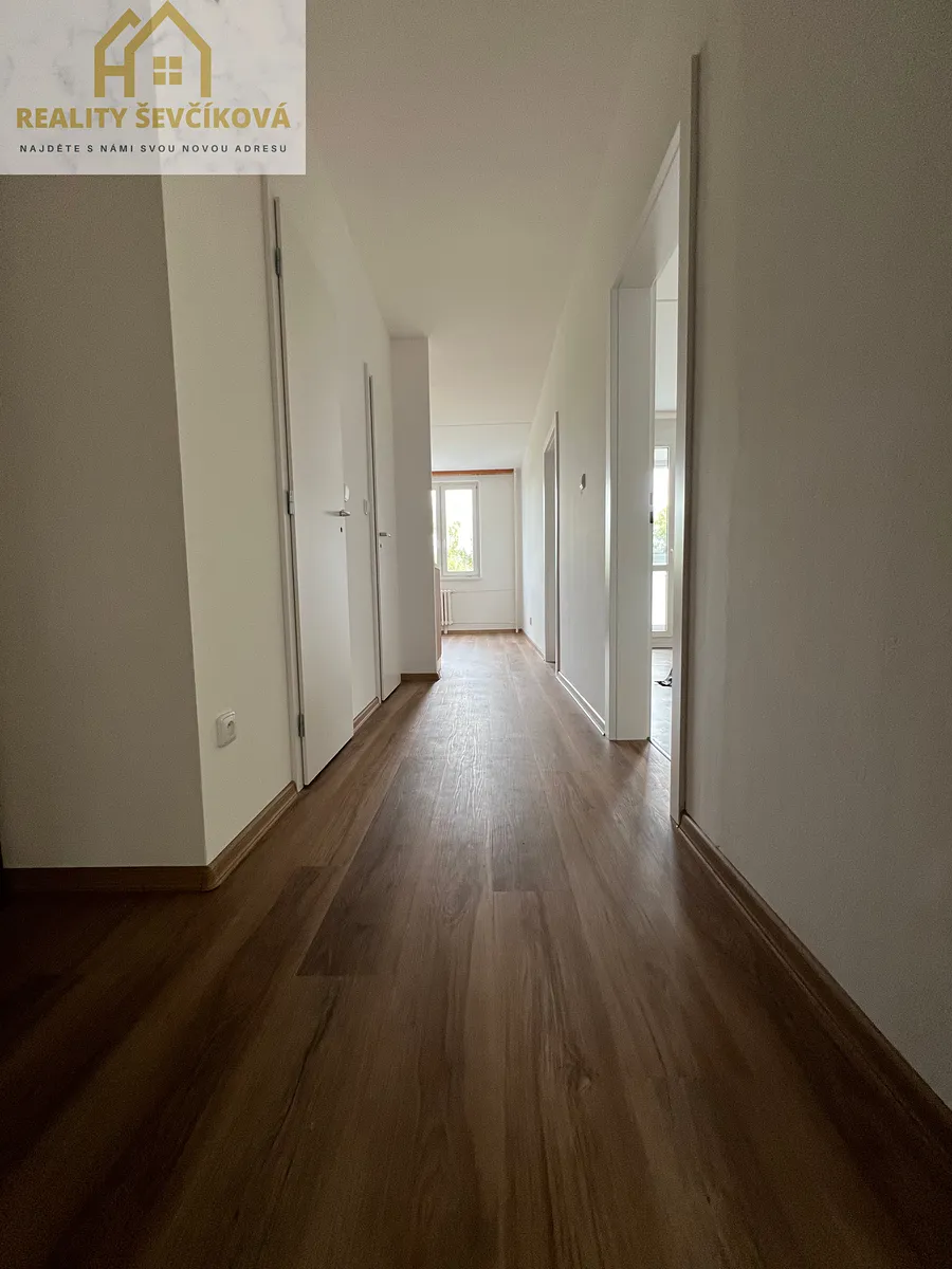 vstupní chodba, koupelna s vanou, samostatné WC, dva velmi prostorné, neprůchozí pokoje – oba se zasklenou lodžií, prostorná kuchyň s místem pro jídelní kout a ložnice s praktickou šatnou.