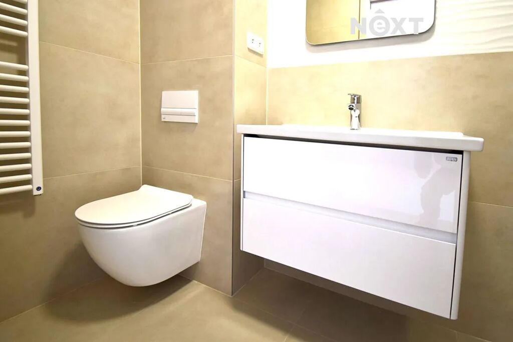 Bydlete v luxusu, přitom bez zatížení hypotékou či půjčkou. Exkluzivně nabízíme k pronájmu částečně vybavený byt 2+kk s užitnou plochou 34,4m2 ve 3. NP v Břeclavi, který je součástí bytového domu „Rezidence Břetislavova Břeclav“ vybaveného výtahem. Součástí vybavení je kuchyňská linka s elektrospotřebiči značky Whirpool: lednice s mrazákem, pečící trouba, mikrovlnná trouba, indukční varná deska, myčka a digestoř. Velká terasa je přístupná jak z obývací části bytu, tak z ložnice, přes HS portál. Všechna okna jsou opatřena elektricky ovládanými venkovními žaluziemi, klimatizace je řešena systémem Sinclair. Ke stavbě stěn a příček byly využity dokonalé protihlukové materiály. K bytu patří uzamykatelná sklepní kóje v suterénu a je možné si připlatit parkovací stání v garáži. Byt je naproti vlakového i autobusového nádraží a do Brna je možné přijet za 35 minut. Nájem činí 15.100,-Kč/měs., zálohy na vodu a služby jsou 900,-Kč/měs. Elektřina se u dodavatele elektřiny převádí na nájemníka. Před převzetím se skládá vratná kauce 30.200,-Kč a jeden nájem předem. Možnost nastěhování od 1.10.2025. Pro komunikaci uvádějte evidenční číslo zakázky N114224.