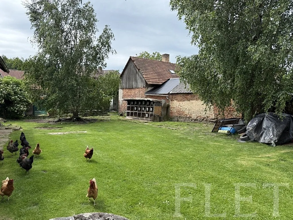 Voda v domě není, na pozemku je studeň – možnost připojení na obecní vodovod který je na hranici pozemku.