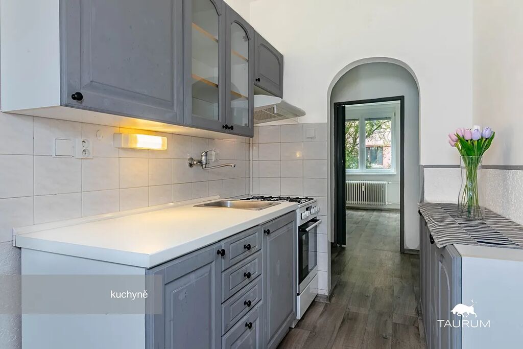 Byt se nachází ve zvýšeném přízemí, v revitalizovaném panelovém domě a je ve velmi dobrém stavu. Nabízí tři pokoje s kuchyní, kde je nový sporák, digestoř s odtahem a vodovodní baterie, koupelnové zděné jádro s vanou, WC a umyvadlem a také celkem prostornou předsíň s původními vestavěnými skříněmi.