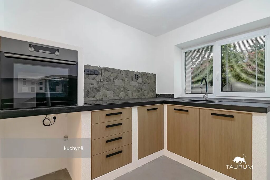 V kuchyni je nová kuchyňská linka s troubou a místem na myčku.